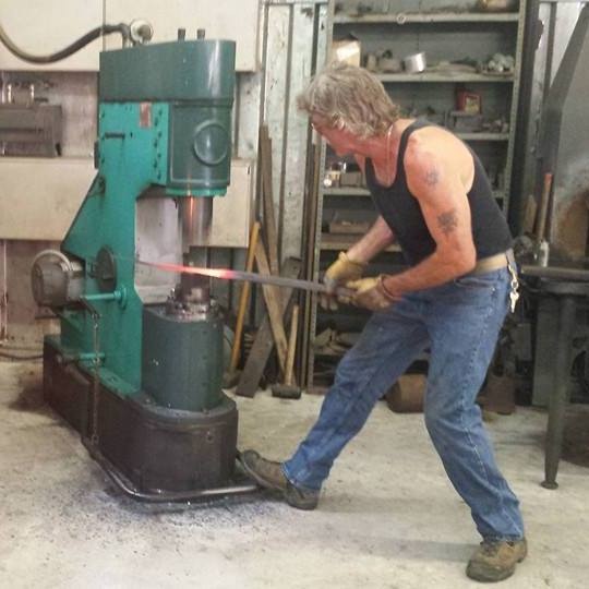 He began blacksmithing in 1998 and became a member of the Gulf Coast Blacksmith Association in 2003. He learned many techniques from books, the internet, and other blacksmiths, which included casting, repousse, Mokume Gane, and all manners of iron forging. He continues to learn new tips and techniques every day.