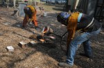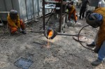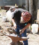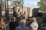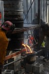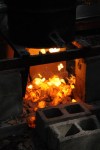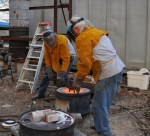 Tom Walker and Paul Tuger worked on loading up a cupola and making an iron pour. Scrap iron was obtained by breaking up old heaters and pipe. Several castings were made including two directly on the ground.