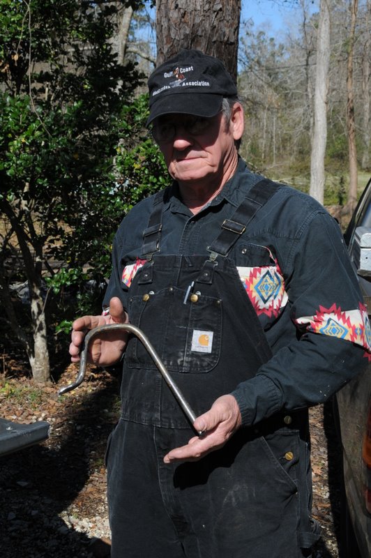 Wayne Cash displays his new hold down anvil tool