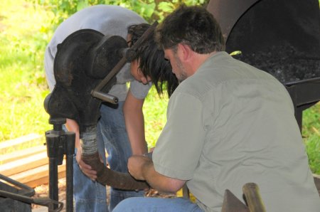 Jakob and Aaron repairing the forge