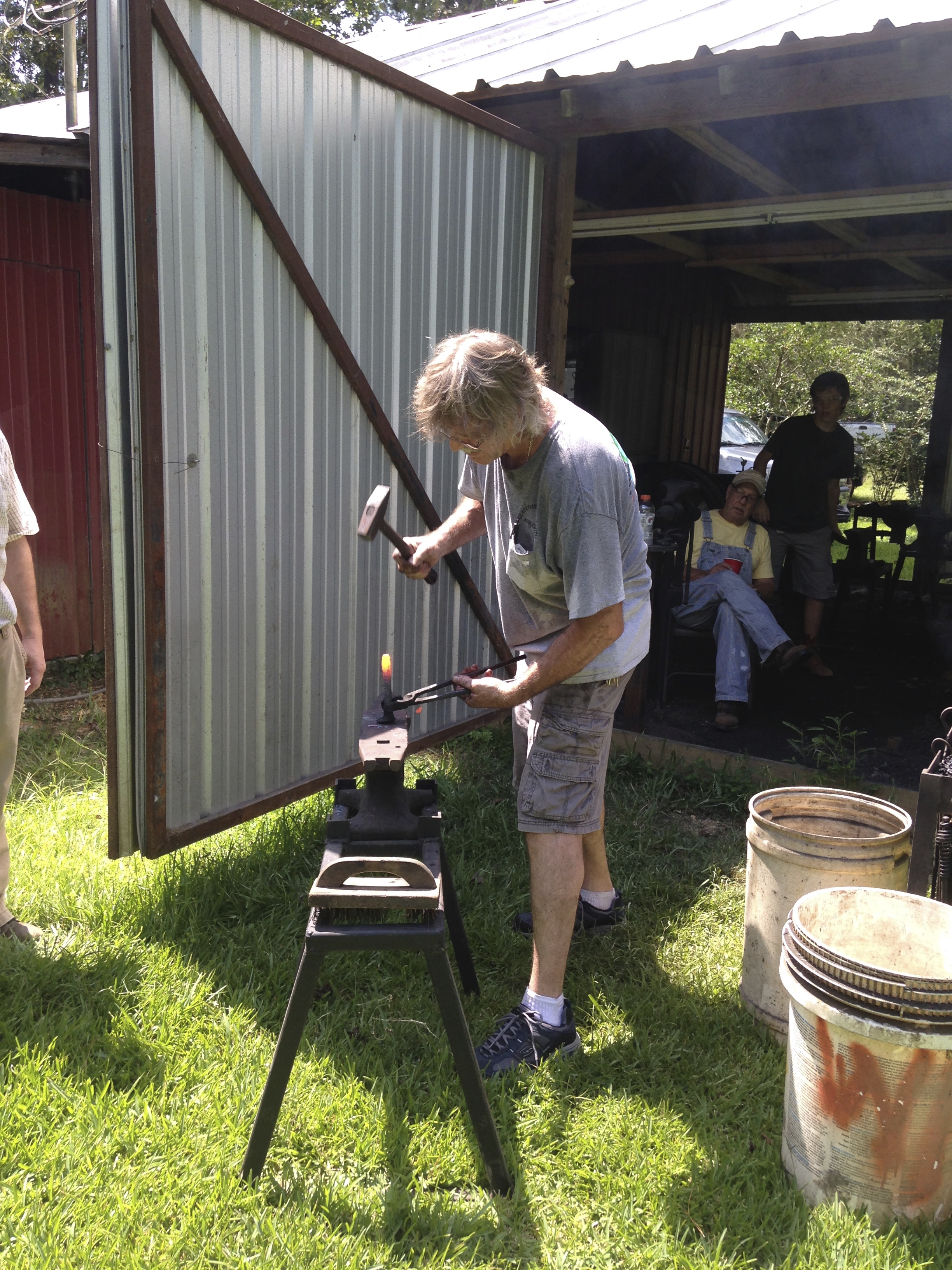 After the demo, forges were lit despite the high temperatures and work began. I don’t know if it was Ed’s good cooking or the excessive heat but it was easy to get folks to stop for lunch. Ed prepared a fantastic menu of white beans and rice for everyone to enjoy. Thank you Ed for a welcomed break!