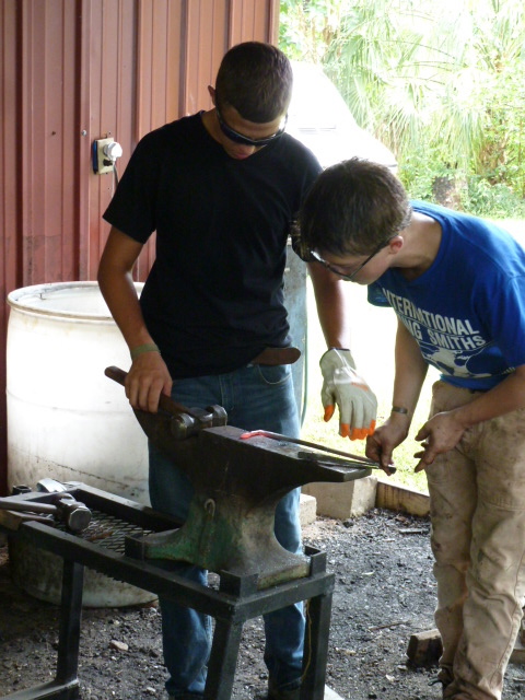 It was good to see so many forges lit after lunch as demos and instruction continued until 3:00. A lot of new members worked alongside the IYS team members one-on-one, making this a memorable experience for all. Even Brian couldn’t resist the fire as he was seen with hammer in hand and hot iron on the anvil.